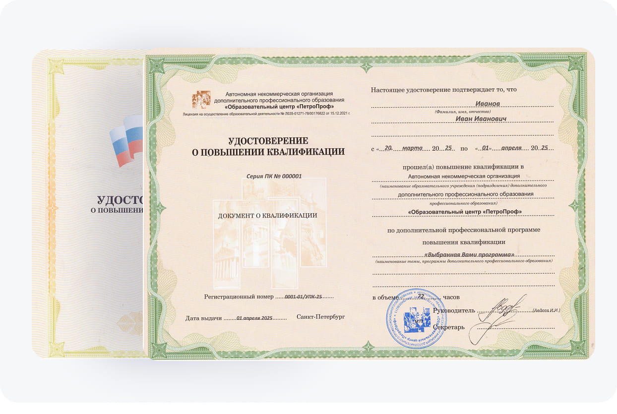 В "ПетроПроф" программы повышения квалификации разработаны с учетом современных образовательных стандартов и требований. Они характеризуются понятными и доступными темами, структурированным материалом и удобством восприятия ценной информации. Также сюда включены практические занятия, которые проходят под наблюдением наших опытных педагогов.